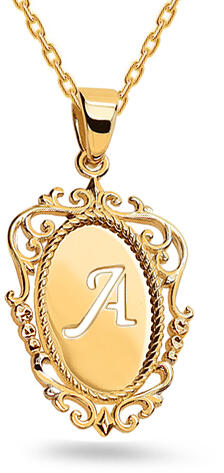 Az A betűs medál erősen csiszolt sárga aranyból készült.