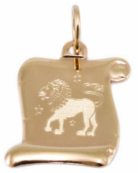 Oroszlán horoszkópot ábrázoló pergamenes, mattítással díszített arany medál.