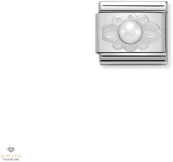 Anyag: Nemesacél | Szín: Fehér, Ezüst | Kő anyaga: Gyöngy | Díszítés: Ezüst berakás (330501-02)