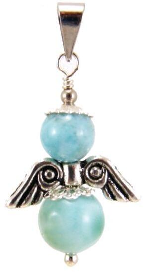 Nagyon ritka, természetes Larimar (Larimár, kék pektolit, vagy delfin kőként is ismert) 6-8mm-es drágakő gyöngyökből készült angyal medál. A fotó illusztráció, a medálbó több darab is rendelhető. Bővebb információ"ADATOK PARAMÉTEREK" fül alatt. A Larimar gyógyhatása