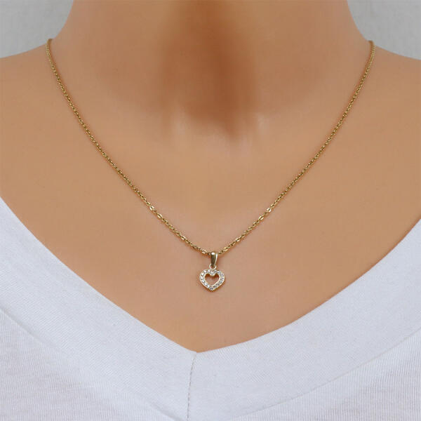 A 9K arany szív alakú medált az egész körvonalán csillogó cirkóniák díszítik. A kerek cirkóniák átlátszó színűek. A medálhoz tartozó láncra kerülő szem felfelé szélesedik. A medál mérete: 8 x 9 mmA láncra kerülő szem szélessége: 1,5 mmA medál súlya: 0,2 gFémjelzéssel ellátva. Medál lánc nélkül.