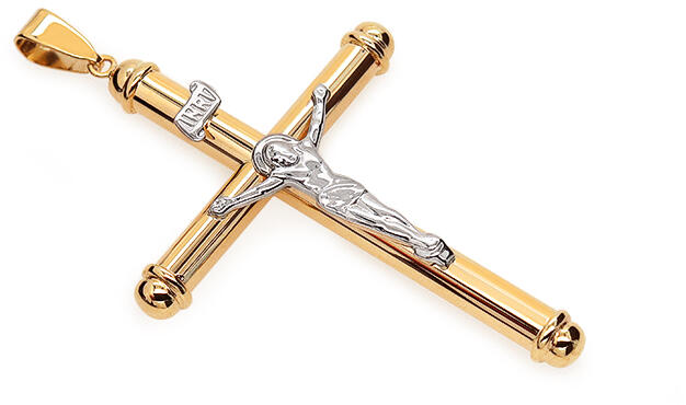 Kombinált arany fülbevaló Jézus a kereszten, modell IZ12306AL