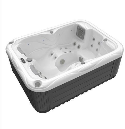 Kompakt jakuzzi kis helyigénnyel 2-4 főre, futurista mintázattal modern lakásokba, kertekbe, teraszokra. Elegáns szürke színe minden környezetben jól mutat. A drop stich oldalfal lehetővé teszi hogy a medence oldalfala masszív és merev legyen, mégis extra vékony (ilyen technológiával készülnek a profi motorcsónakok és SUP deszkák is). A víz felmelegítését egy biztonságos