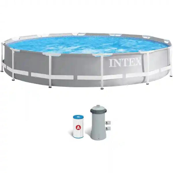 Az Intex Prism Frame fémvázas medence egyszerűen felállítható és szétszedhető, váza acélból, míg oldalfala 3 rétegű PVC és poliészter anyagból készült. A medencét az acél csőváz tartja, amely a kialakított füleken átbújtatva merevíti a szerkezetet. Fontos, hogy a medencét csak sík talajon szabad felállítani. A vízforgató (szúrővel) a készletben található cs