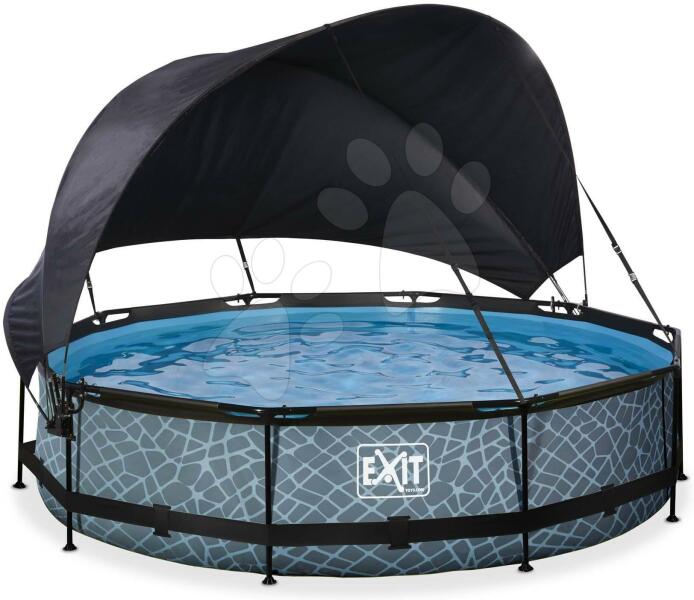 Medence szűrős szivattyúval Stone pool a holland Exit Toys műhelyéből egy 360*76 cm méretekkel rendelkező föld feletti kerek medence, mely az egész családnak kellemes fürdőzést biztosít a forró nyári napokon. Szürke robosztus medence oldalfala kőmintával minden udvart és kertet még szebbé varázsol, erős acél medencekeret portechnológiával kezelve ellenáll a korrózión