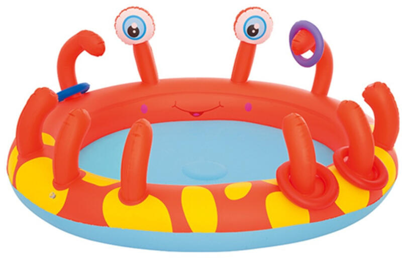 - Vidám, rákocskás kerti medence - Felfújható, tartós vinil - Biztonsági szelepek - Kerti csapra köthető - 4 rákollóból spriccelő vízzel enyhíthető a nyári forróság - 4 db tartozék PVC dobókarika tartozék - Vízkapacitás: 129 liter Garancia (fogyasztóknak): 6 hónap - Vidám, rákocskás kerti medence - Felfújható, tartós vinil - Biztonsági szelepek - Kerti csapra köth