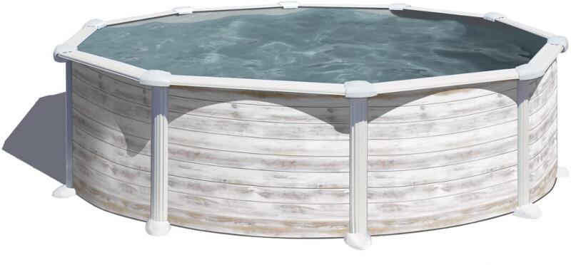 Medence szűrővel Wood pool a holland Exit Toys műhelyéből egy kompakt 427*122 cm méretekkel rendelkező föld feletti kerek medence, mely szülőknek és gyerekeknek egyaránt kellemes felfrissülést nyújt majd a nyári hőségben. Barna robosztus medence oldalfala famintával minden udvart és kertet még szebbé varázsol, erős acél medencekeret portechnológiával kezelve ellenáll a