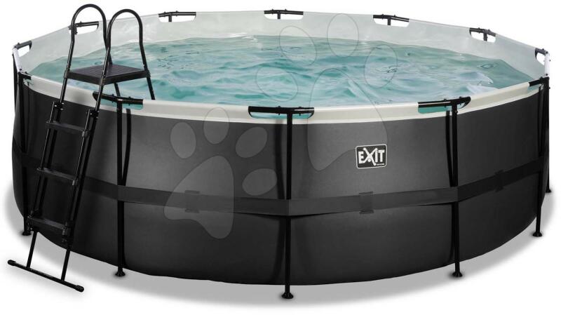 Medence vízforgatóval Black Leather pool a holland Exit Toys műhelyéből egy kompakt 427*122 cm méretekkel rendelkező föld feletti kerek medence, mely az egész családnak kellemes fürdőzést biztosít a forró nyári napokon. Robosztus medence oldalfala luxus fekete bőr hatással minden udvart és kertet még szebbé varázsol, erős acél medencekeret portechnológiával kezelve ellen