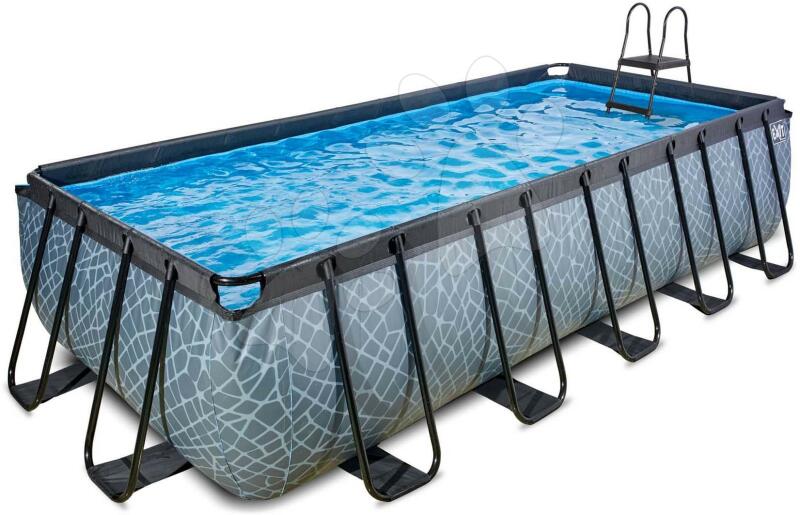 Medence szűrős szivattyúval Stone pool a holland Exit Toys gyártó egyik legnagyobb medencéje 540*250*122 cm méretekkel , mely szülőknek és gyerekeknek egyaránt kellemes felfrissülést nyújt majd a nyári hőségben. Szürke robosztus medence oldalfala kőmintával minden udvart és kertet még szebbé varázsol, erős acél medencekeret portechnológiával kezelve ellenáll a korrózi