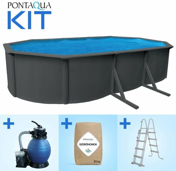 Medence szűrős szivattyúval Stone pool a holland Exit Toys gyártó egyik legnagyobb medencéje 540*250*122 cm méretekkel , mely szülőknek és gyerekeknek egyaránt kellemes felfrissülést nyújt majd a nyári hőségben. Szürke robosztus medence oldalfala kőmintával minden udvart és kertet még szebbé varázsol, erős acél medencekeret portechnológiával kezelve ellenáll a korrózi