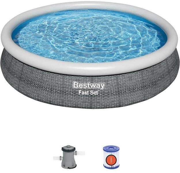 - 366 cm átmérő, 76 cm magasság, tartozék méretpontos védőtakaró - Modern, szürke színű ponyva - Superior Grey Garancia (fogyasztóknak): 2 év Bestway korlátozott garancia* A Bestway korlátozott garancia kiterjed*: - a fémvázra és medence testre és kiegészítőkre a vásárlástól 6 hónapig - vízforgatóra a vásárlástól 2 évig - védőtakarókra és talajtakarókra a v