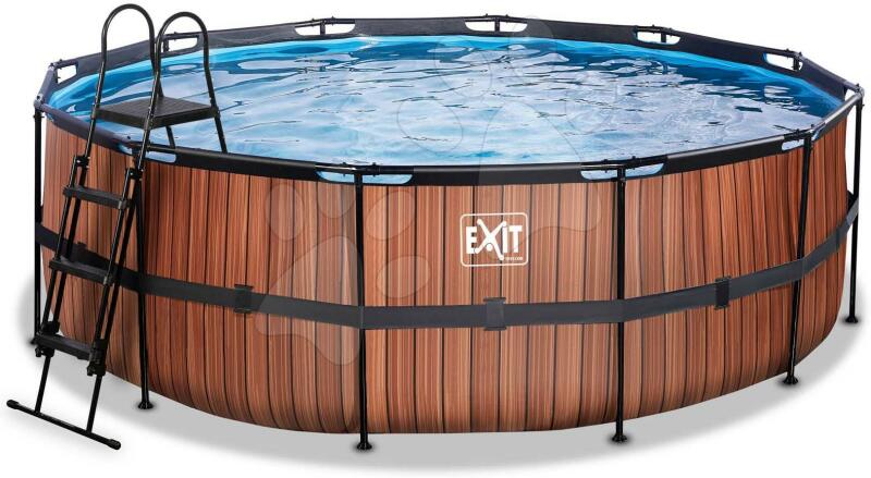 Medence vízforgatóval Wood pool a holland Exit Toys műhelyéből egy kompakt 427*122 cm méretekkel rendelkező föld feletti kerek medence, mely az egész családnak kellemes fürdőzést biztosít a forró nyári napokon. Barna színű robosztus medence oldalfala famintával minden udvart és kertet még szebbé varázsol, erős acél medencekeret portechnológiával kezelve ellenáll a korr