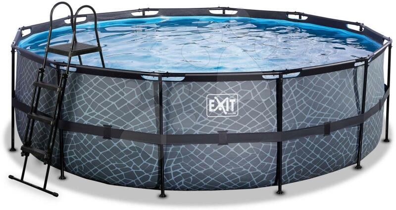 Medence vízforgatóval Stone pool a holland Exit Toys műhelyéből egy kompakt 450*122 cm méretekkel rendelkező föld feletti kerek medence, mely az egész családnak kellemes fürdőzést biztosít a forró nyári napokon. Szürke színű robosztus medence oldalfala kőmintával minden udvart és kertet még szebbé varázsol, erős acél medencekeret portechnológiával kezelve ellenáll a k