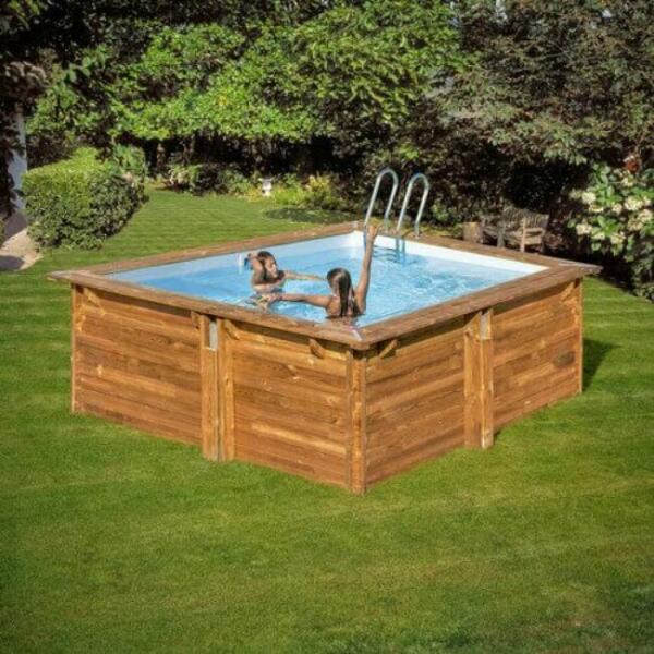 PONTAQUA TIMBER fa medence 3,05m x 3,05m x 1,19 m. Természetes, elegáns megjelenésű kész, kerti medencék valódi tömörfából. Minden famedencét kompletten szállítunk. A csomag tartalmazza a medencetestet, a vízforgató- és szűrőberendezést, a szkimmert és a befúvó elemeket, a külső és belső létrát, valamint az aljzatot és az oldalfalat takaró geotextíliát. Rozsdamente