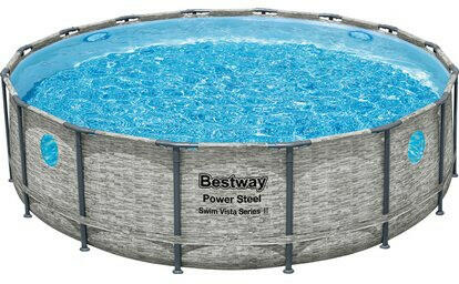 Cikkszám: 56725 Power Steel Swim Vista kör alakú medenceA medence mérete: 4.88m x 1.22m Vízbefogadó-képessége (90%)19480 liter - Könnyen felállitható - 3 rétegű erősített PVC medencetest - A beépitett áramlásszabályozóval ellátott leeresztőszelep megkönnyiti a leeresztést, ha a szelepet egy kerti tömlőhöz csatlakoztatja (mellékelt adapterrel) - A medence extra erős old