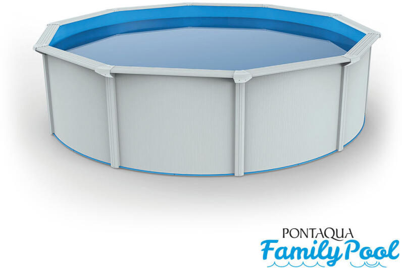 Új Pontaqua medencecsalád, ami föld felett és földbe süllyesztve is telepíthető. Gyors és költséghatékony megoldás tartós és masszív családi medencére. A medencecsalád két féle külső burkolattal, négyféle méretben elérhető. Tulajdonságok: Méret: 460 x 120 cm Forma: kerek Szín: elegáns papírfehér ( RAL 9018) 0,4 mm vastag galvanizált redőzött acélfal 0,4 mm vas