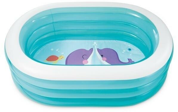Felfújható medence gyerekeknek, leeresztő szeleppel a padlón.