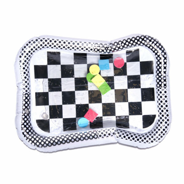 Nagy színes, vizes matrac . Kontrasztos fekete fehér mintával díszítve, mozgatható színes geometriai formákkal. 3.990 Ft Szín: fekete-fehér Méretek: 65x50cm Kiváló szőnyeg csecsemők számára kontrasztos fehér és fekete mintával. A matrac belsejében lévő színes geometriai formák a gyermek mozgásának hatására mozognak. Az úszó elemek érdeklik a babát, és felkeltik a