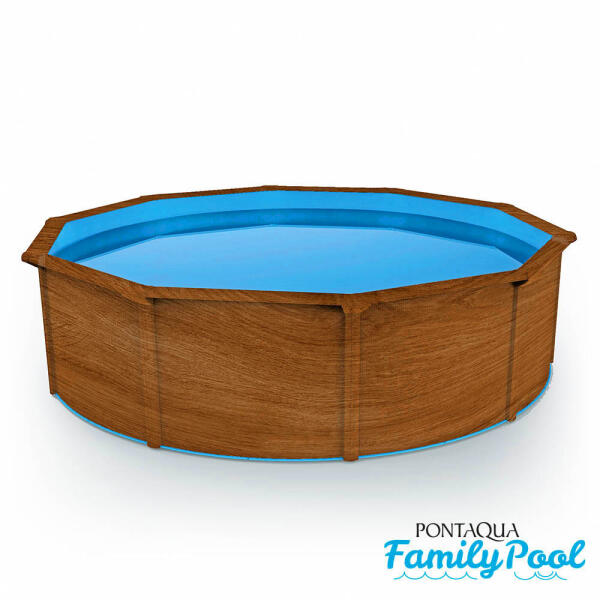 Új Pontaqua medencecsalád, ami föld felett és földbe süllyesztve is telepíthető. Gyors és költséghatékony megoldás tartós és masszív családi medencére. A medencecsalád két féle külső burkolattal, négyféle méretben elérhető. Tulajdonságok: Méret: 460 x 120 cm Forma: kerek Szín: barna 0,4 mm vastag galvanizált redőzött acélfal 0,4 mm vastag UV álló belső fólia