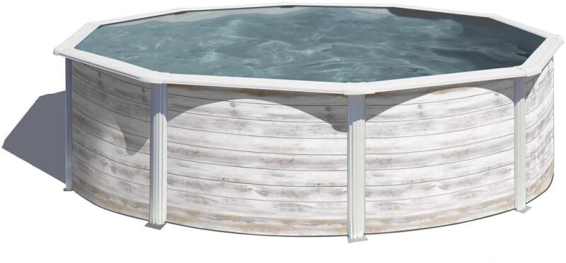 Új Pontaqua medencecsalád, ami föld felett és földbe süllyesztve is telepíthető. Gyors és költséghatékony megoldás tartós és masszív családi medencére. A medencecsalád két féle külső burkolattal, négyféle méretben elérhető. Tulajdonságok: Méret: 460 x 120 cm Forma: kerek Szín: fa mintás 0,4 mm vastag galvanizált redőzött acélfal 0,4 mm vastag UV álló belső f