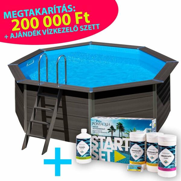 Új Pontaqua medencecsalád, ami föld felett és földbe süllyesztve is telepíthető. Gyors és költséghatékony megoldás tartós és masszív családi medencére. A medencecsalád két féle külső burkolattal, négyféle méretben elérhető. Tulajdonságok: Méret: 490 x 360 x 120 cm Forma: ovális Szín: antracit 0,4 mm vastag galvanizált redőzött acélfal 0,4 mm vastag UV álló bel
