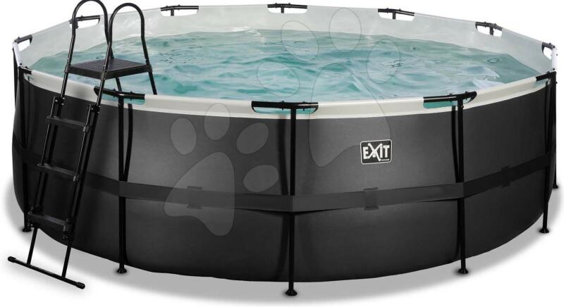 Medence vízforgatóval Black Leather pool a holland Exit Toys műhelyéből egy kompakt 427*122 cm méretekkel rendelkező föld feletti kerek medence, mely az egész családnak kellemes fürdőzést biztosít a forró nyári napokon. Robosztus medence oldalfala luxus fekete bőrhatással minden udvart és kertet még szebbé varázsol, erős acél medencekeret portechnológiával kezelve ellená