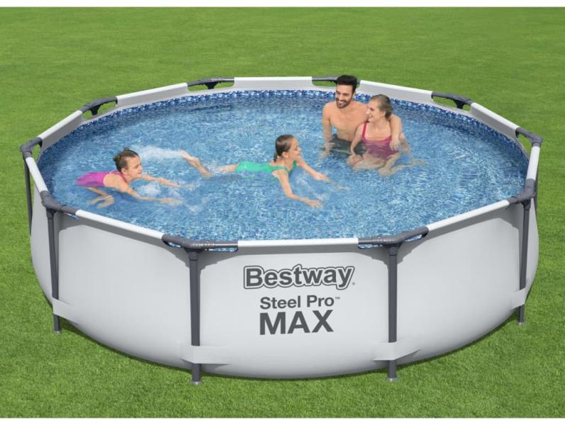 Bestway Steel Pro MAX medenceszett 305 x 76 cm Ebben a Bestway Steel Pro MAX medenceszettben rengeteg szórakozásban lesz része családjával és barátaival. A kerek forma nagyobb teret biztosít az úszáshoz és a játékhoz. A stílusos megjelenésű medence megerősített falai Tritechből készültek, ami egy nagy teherbírású laminált PVC-ből és poliészter hálóból álló erősít