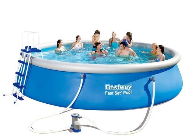 Bestway puhafalú kerti medence 457x122cm leírása A Bestway puhafalú kerti medence egy 457 x 122 cm méretű puhafalú medence, mely tartalmazza a vízszűrő berendezést és a létrát is. Ftalát mentes anyagból készült. Könnyedén és gyorsan telepíthető, szakértelmet nem igényel. Extra erős három rétegű PVC anyagból készült (TRI-TECH TM technológia), mely ellenáll a napsug