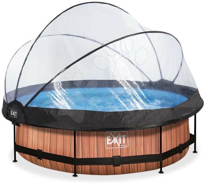 Medence szűrős szivattyúval Wood pool a holland Exit Toys műhelyéből egy 300*76 cm méretekkel rendelkező föld feletti kerek medence, mely az egész családnak kellemes fürdőzést biztosít a forró nyári napokon. barna színű robosztus medence oldalfala famintával minden udvart és kertet még szebbé varázsol, erős acél medencekeret portechnológiával kezelve ellenáll a korróz