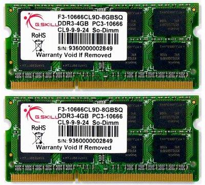 Gyártó - G. Skill, Kategória - DDR3 Laptop, Termékcsalád - SQ Series, Méret - 8GB (2x4GB), Csatorna - Dual Channel, Sebesség - 1333Mhz, Késleltetés - CL9, Idozítés - 9-9-9-24, Feszültség - 1.5V
