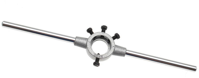 Abraboro hajtóvas menetmetszőhöz, DIN 225, 25x9,0 mm, M7-9 Zárt és hasított menetmetszők befogásához DIN EN 24231 szerint. Acél fogantyúkkal, ezek közül az egyik lecsavarozható, a menetmetszőt 5 csavar rögzíti. Kivitel: ház présöntött cinkből. Az ABRABORO immár 28 éve forgalmaz professzionális kézi- és elektromos szerszám tartozékokat. Számos, nagyrészt európai gyá