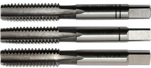 PTK Kézi menetfúró METRIKUS, NORMÁL menet HSS DIN360 PTK Kézi menetfúró készlet, 3 részes DIN352 HSS Általános használatra, nem koptató anyagokhoz, ötvözetlen és kevésbé ötvözött acélhoz Átmenő és zsák furathoz. 60°-os profilszöggel, normál metrikus menetek készítéséhez.