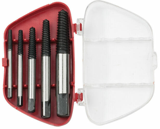 Professzionális készlet törött csavarok eltávolításához Anyagminőség: 40Cr Műanyag tárolódobozban Széles mérettartomány: M3-M6 (1/8" - 1/4") M6-M8 (1/4" - 5/16") M8-M11 (5/16" - 7/16") M11-M14 (7/16" - 9/16") M14-M18 (9/16" - 3/4") Cikkszámméret042401-0016M5-M18