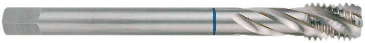VÖLKEL gépi menetfúró METRIKUS, NORMÁL menet DIN 376 Speciális Sp. 35° (kék gyűrűs) Gépi menetfúró, Speciális, KÉK gyűrűs, csavart hornyú 39°, DIN 376, HSS-E. Alkalmazható magas kopásállóságú 1200 N/mm2 szakítószilárdságú fémekhez, magasan ötvözött anyagokhoz, rövid forgácsot adó rozsdamentes anyagokhoz, ötvözött szerszámacélokhoz. (VÖLKEL 364. . )