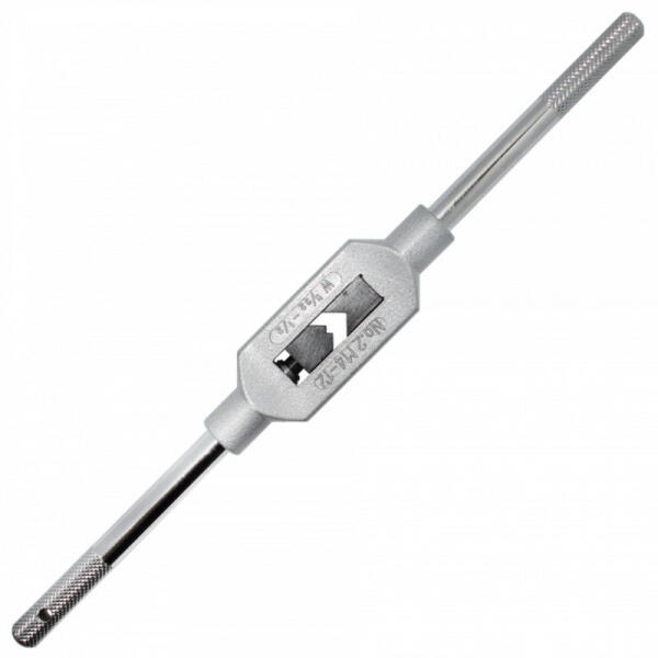 Ideális menetvágáshoz nehezen hozzáférhető helyeken. Kétpofás befogóval négyszög szárak befogásához. Acél szárakkal, ebből az egyik szár lecsavarozható, a másik rögzít. Kivitel: présöntött cink ház Szorítópofák: edzett Típus: 4 Tartomány: M+MF : M11-M27 Ww: 7/16"-1" G: 1/8"-3/4"