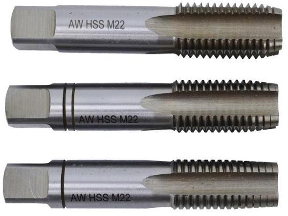Anyag: HSS HRC 65 gyorsacél Magas kopásállóság Menetvágás: belső, jobb oldali, metrikus Menetprofil: 60° DIN 352 szabvány Forgácshoronyszám: 4 Méret: M7 x 1 mm Tömeg: 42 g Szett tartalma: elővágó, utánvágó, készrevágó