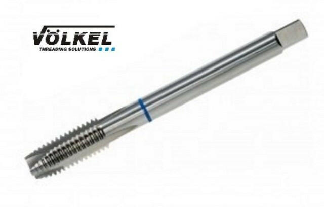 VÖLKEL gépi menetfúró METRIKUS, NORMÁL menet DIN 376 Speciális (kék gyűrűs) Gépi menetfúró, Speciális, KÉK gyűrűs egyenes hornyú DIN 376 B form, HSS-E. Alkalmazható magas kopásállóságú 1200 N/mm2 szakítószilárdságú fémekhez, magasan ötvözött anyagokhoz, rövid forgácsot adó rozsdamentes anyagokhoz, ötvözött szerszámacélokhoz. (354. . )