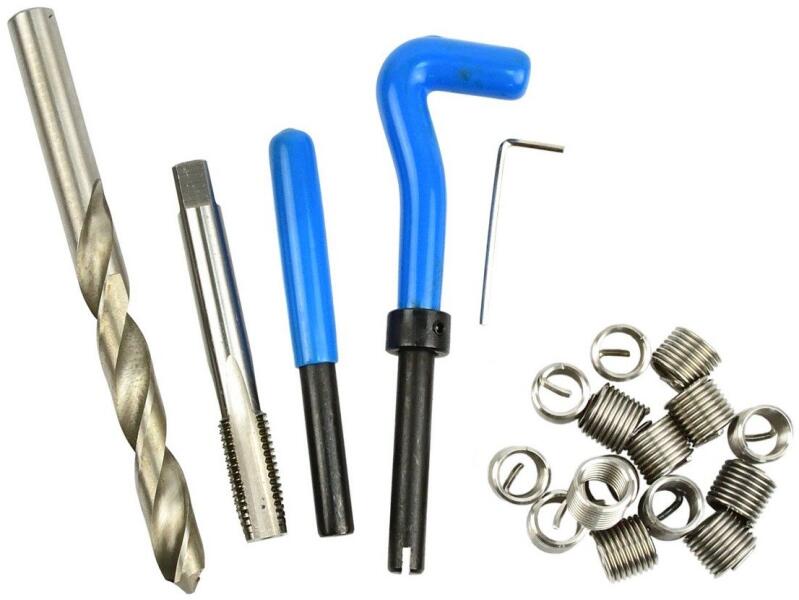 Leírás Menetjavító készlet sérült M12x1,75mm-es menetek javítására. A készlet tartalmaz egy kiváló minőségű HSS4341 gyorsacélból készült menetfúrót, egy fémcsiga fúrót, egy betétbehajtót és egy menetjavító betétkészletet. A termék jellemzői Fúró és menetfúró kiváló minőségű HSS4341 gyorsacélból M12-es menetek javítására tervezték Edzett rozsdamente