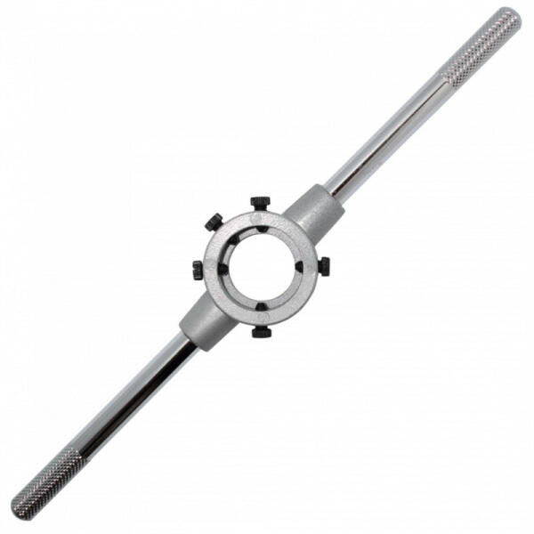 Zárt és hasított menetmetszők befogásához DIN EN 24231 szerint. Acél fogantyúkkal, ezek közül az egyik lecsavarozható, a menetmetszőt 5 csavar rögzíti. Kivitel: ház présöntött cinkből. M+MF: MF12-MF15 Ww: - G: 1/4"
