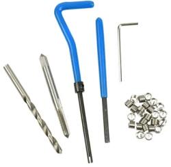 Készlet szakadt és sérült M5x0,8mm menetek javítására. A készlet tartalmaz egy menetfúrót és egy fúrószárat, amelyek kiváló minőségű gyorsacélból (HSS4341) készültek, egy vezető fogantyút, egy kiütőt és egy spirálbetét készletet. A termék jellemzői: A fúrószár és a menetfúró kiváló minőségű gyorsacélból (HSS4341) készültek M5 menetek javítására al