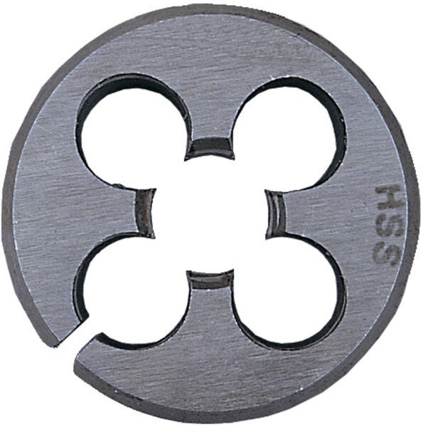 Sheerwood Kör alakú HSS menetmetsző Kemény kör alakú műanyag tokban szállítva. Tulajdonságok: - Anyaga: HSS - Méret: 3/8"x24 - Menet Szabvány: UNF - Szár átmérő: 1" - Négyszög laptáv: 3/8" - Sztandard: BS 1127 ISO 529