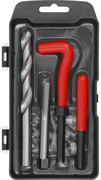 Menetjavító készlet jellemzői A menetjavító készlet használata nélkülözhetetlen minden olyan sérült menet javításakor, mikor nem megengedett a nagyobb menetméret alkalmazása. Javítás során beépítésre kerülő menetjavító betétek nagy kopásállósággal rendelkeznek. Az eredeti menet szilárdságát eléri az új javított menet. Alkalmazható különböző szilárdságú