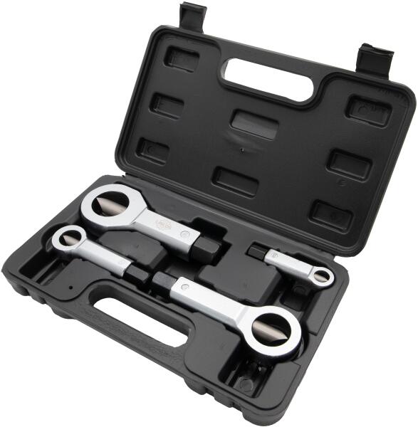 Leírás Ez a készlet minden szerelő eszköztárának nélkülözhetetlen kiegészítője, praktikus megoldást kínálva a hagyományos módszerekkel a korrózió vagy túlhúzás miatt nem távolítható anyák kezelésére. A készlet 9 mm-től 27 mm-ig terjedő mérettartományban használható, így sokoldalúan alkalmazható különféle autó- és gépkarbantartási feladatokhoz. Eltávol