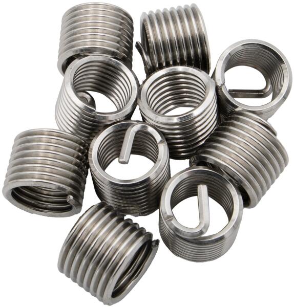 Alkalmazás: - Menet Sérült vagy elhasználódott menetek javítása - Menetes páncélozás kis nyírószilárdságú anyagokhoz Előnyök: - Precíziós profilozott rozsdamentes acélhuzalból készült, amelyet csavarvonal alakú spirálba tekercseltek - Nagy szilárdságú és hosszú élettartamú belső menetekhez - Magasabb hőmérséklet és korrózióállóság