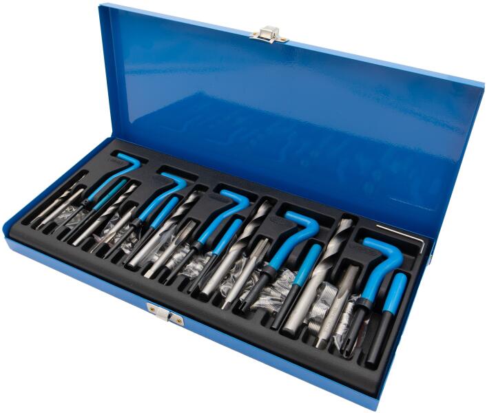 Termék Jellemzők: Menetméretek: A készlet tartalmaz M5, M6, M8, M10, M12 méretű Helicoil típusú menetjavítókat. Ezek a méretek a leggyakrabban előforduló menettípusokat fedik le, így a készlet széles körben használható. A készlet teljes tartalma 131 darabból áll. Helicoil méretek M5 x 0.8 x 6.7mm (25db) M6 x 1.0 x 10.8mm (25db) M8 x 1.25 x 10.8mm (25db) M10 x 1.5 x 13.5mm (