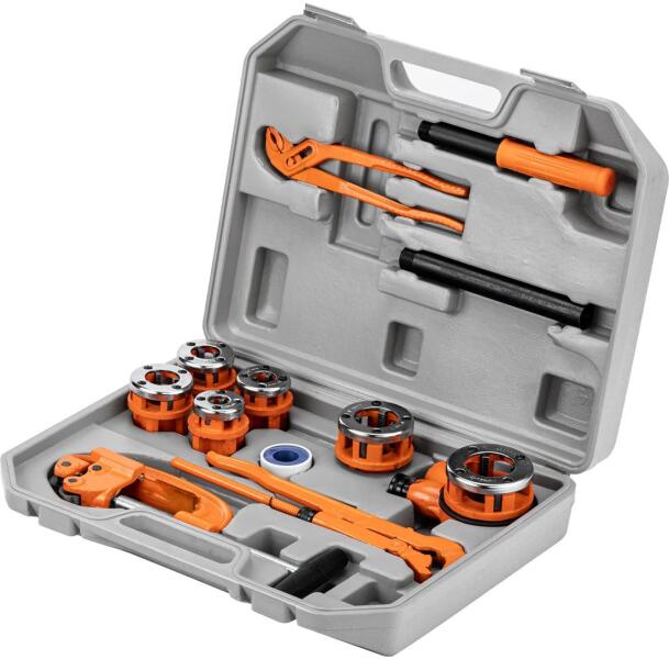 kiszerelés: kofferméretek: (G/BSPT) hüvelyk 1/4-3/8-1/2-3/4-1-1,25"meghajtás: racsnisnem megfelelő: 1/4-1/8 BSP, 1/8NPT menetrekiszerelés: 5db fej, svédfogó, papagályfogó, befogófej, toldószár, tömítőszalag, csővágó darabszám: 13 dbsúly: 9,9 kgméretek: 470x360x115 mmEAN kód: 4044996112756