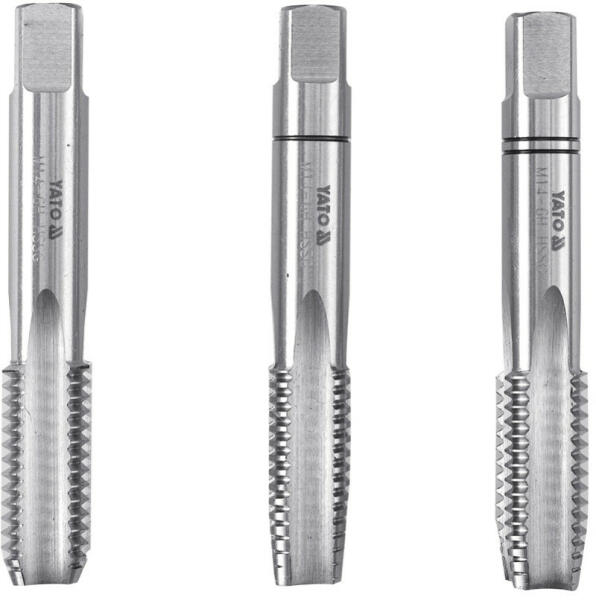 A készlet 3 db nagy teljesítményű gyorsacélból készült metrikus menetű menetfúrót tartalmaz. Enyhe szerkezeti, szabadon vágható vagy hőkezelt acélhoz használható. Termék részletek: csap típusa: belső méret: M20 x 2,5 menethossz: 40 mm teljes hossz: 95 mm szár átmérője: 14 mm Anyaga: HSS M2 (nagy teljesítményű gyorsacél) Csomag tartalma: 1 x 3 db M20 menet készlet