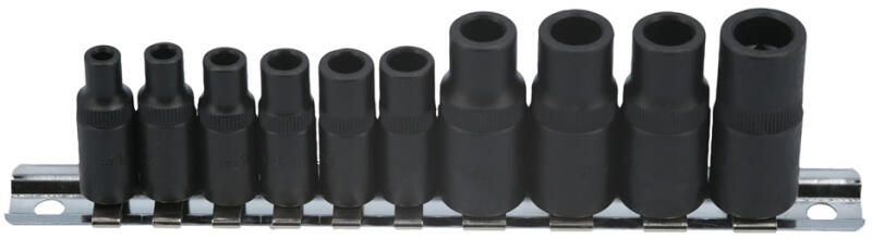Laser Tools - UK Crowa hajtóhoz adapter készlet menetfúrókhoz sőpeciális négy lapú mágneses kivitelű bwefogó adapterek Mágneses kialakítású négylapú 10 darabos befogó fej készlet. Tulajdonságok: - Meghajtás: 1/4" - 3/8" Méretek: - 4 db 1/4" befogás: #1 (2.8mm), #2 (3.4mm), #3 (4.0mm), #3.5 (4.5mm), #4 (4.6mm), #4.5 (5.4mm); - hossz: 32 mm - 4 db 3/8" befogás: #5 (6.4mm), #6