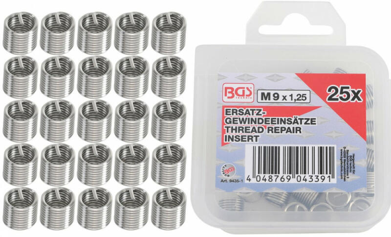 BGS technic 25 részes menetjavító persely készlet, M9X1.25 (BGS 9435-1) 10 mm-es hossz. Élettartam anyag- és törésgarancia!