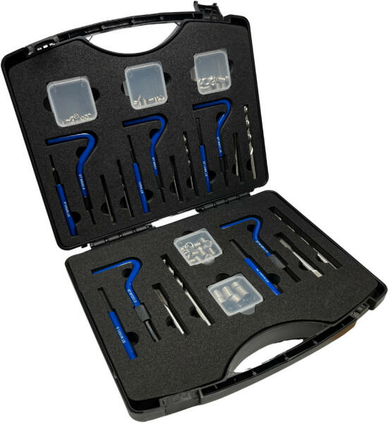Alkalmas sérült vagy kopott menetek javítására, de alkalmas új menetekhez is Elsősorban lágyabb fémekhez és ötvözetekhez ajánlott Alkalmas inches menet metrikus menetté történő átalakítására, vagy viszont A betétek hossza: 1.5 x D (átmérő "hossza") Igény esetén más hosszméretekben is beszerezhető A készlet tartalma: menetjavító betétek, HSS kézi menetfúró, magf